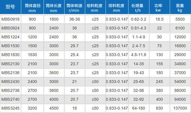 当要求产品粒度80%小于2.0%至0.5毫米时,一般采用棒磨机,棒磨机的产品粒度,一般最大不超过4.7毫米,最小不小于0.4毫米,棒磨机的给矿粒度为80%小于20毫米至4毫米,给矿粒度最大也可达50毫米。由于磨棒的材质等原因,磨棒的长度不能超过6.1米,否则会造成乱棒等恶果,因此棒解机的规格还没有超过规格4.6×6.3米。